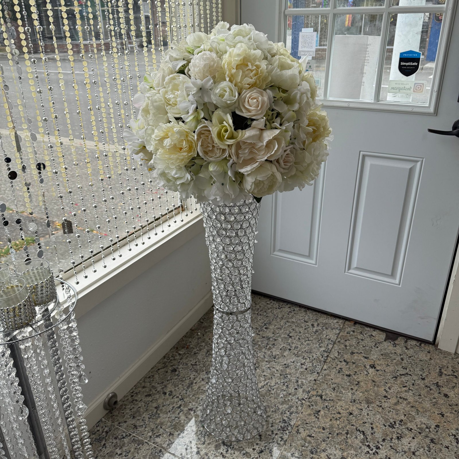 36″ Crystal Hurricane Vase & 16″ Flower Arrangement