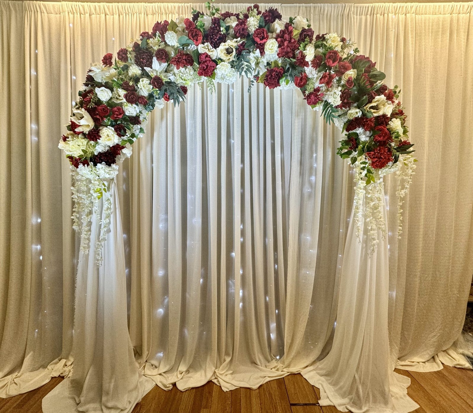 Flower Arch Only (7’W x 8’H): Frame, flower arch and 2 chiffon drapes.