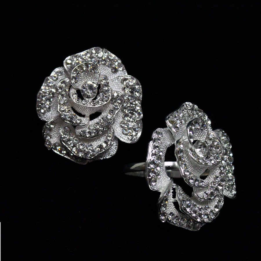 Napkin Ring Holder, Metal, Rhinestone, Rose